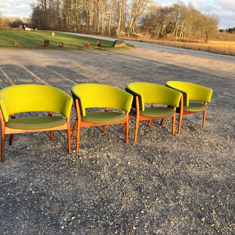 Lækker lænestol i sort træ og koksgråt stof der ligner meget en ND83 lænestol designet af Nanna Ditzel. Klassisk og meget behagelig loungestol. Små skræmmer på benene som måske godt kan rettes op på med maling