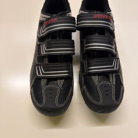 Craze cykelsko i størrelse 37. Skoene er sorte med hvide detaljer og lukkes med to velcroremme samt en justerbar spænde øverst. Undersiden har klik-klamper monteret, som passer til pedaler med tre-bolts system (f.eks. landevejssystemer). Overdelen er i syntetisk materiale med ventilationsfelter ved tæerne. Velegnet til cykling på landevej eller hometrainer, hvor der anvendes klikpedaler.