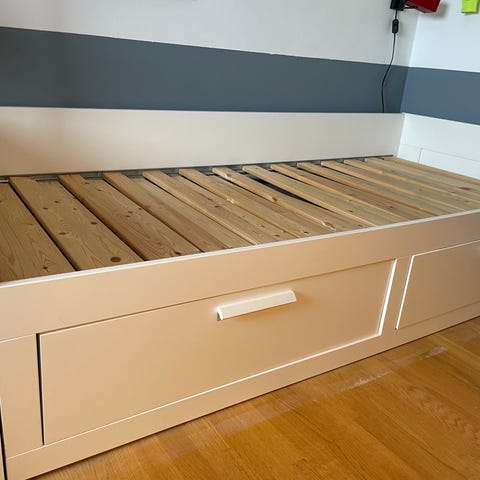 Sengen er skilt ad. Skufferne stadig samlede. Skal hentes i Odense.