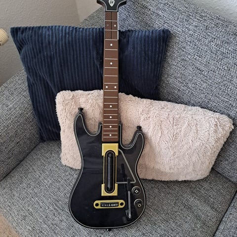 Riffmaster ps5 guitar. Den spiller ps4/5 guitar hero spil og Fortnite festival nem at sætte til med usb. Kan foldes sammen.