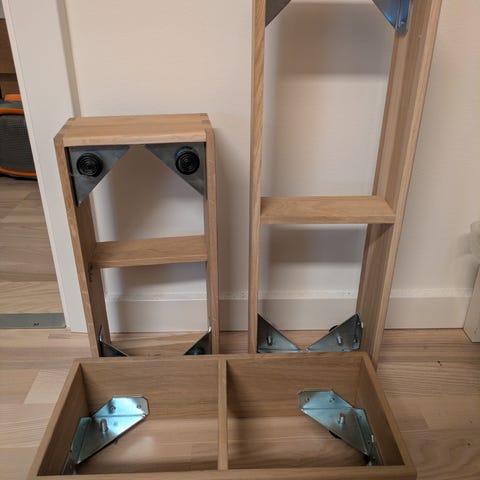 B98 reolen er den kendte FDB reol designet af Mogens Koch. 4 stk sokler (54*17) til B98 reol, 20 cm dyb, samt 1 stk sokkel (36*17) ligeledes til B98 reol, 20 cm dyb. Soklerne er lavet i massiv eg. Ingen synlige brugsspor. Prisen er per styk.