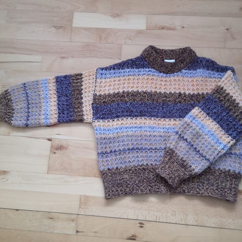 Vila sweater til kvinder i str. S. Strikken er i beige bomuld med kort ærme og gennemgående hulmønster/ajourstrik. Ribkanter ved hals, ærmer og forneden. Velegnet som let overdel til hverdag eller lag-på-lag brug.