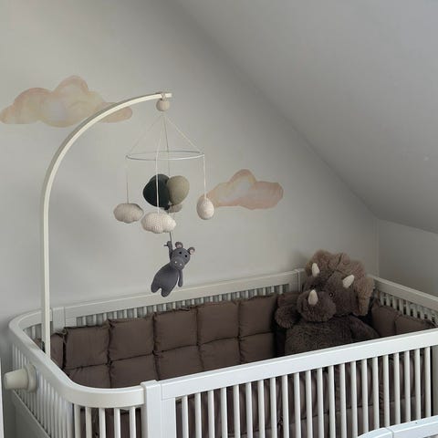 Sengerand fra Lille-Per i mønstret stof (sort/grå). Sengeranden er blød og polstret, og passer til brug i Lille Per tremmeseng (med tremmer monteret)