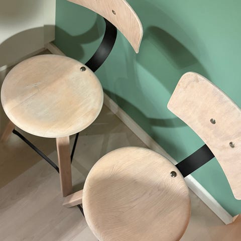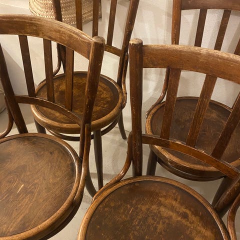 Her er de lækreste vintage stole med stel af rødmalet jern og sæder og ryglæn af kraftige lakerede træstave. De har selvfølgelig brugsspor, men de fremstår i flot stand for alderen og er, udover at være praktiske, super dekorative og stemningsfulde. De kan klappes sammen for nem opbevaring. Vil være så fine på altanen, i kolonihaven, som ekstra stole eller som pynt i indretningen.