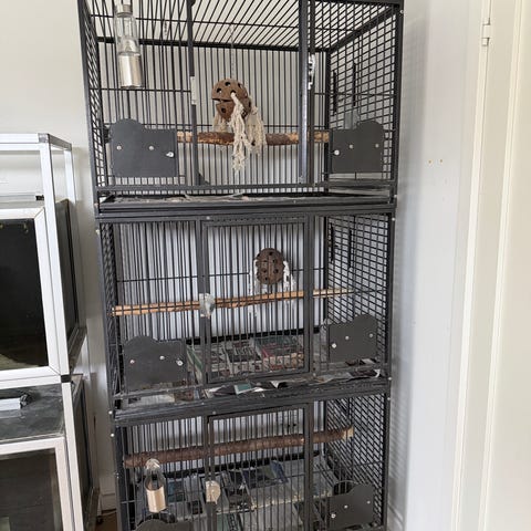 Papegøje bur sælges, det er blevet brugt til en ædelpapegøje