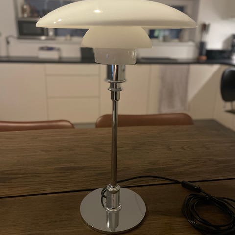 PH 3/2 er en klassisk tre-skærms lampe, der giver et blændfrit og jævnt lys nedad og ud i rummet. Velegnet som bord- eller konsolbelysning i stue, soveværelse eller kontor.