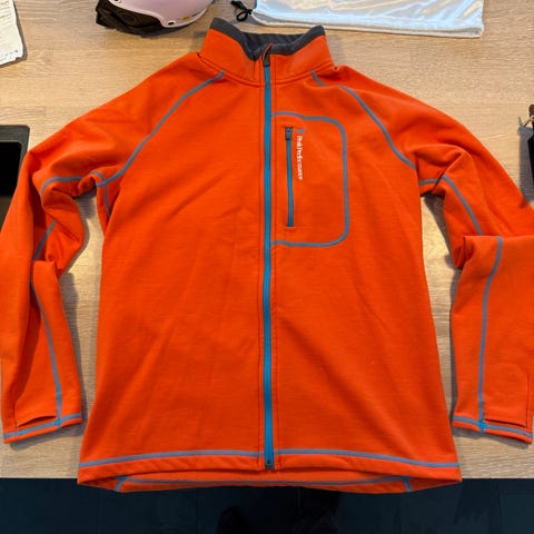 Lowe Alpine fleecejakke til herre i størrelse XL. Jakken er rød med sorte detaljer ved krave og lynlås. Den har gennemgående lynlås foran og høj krave. Velegnet som mellemlag eller let yderlag i køligere vejr.