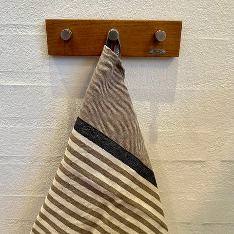 Knagerækken er udført i sortmalet træ med runde metalknopper.