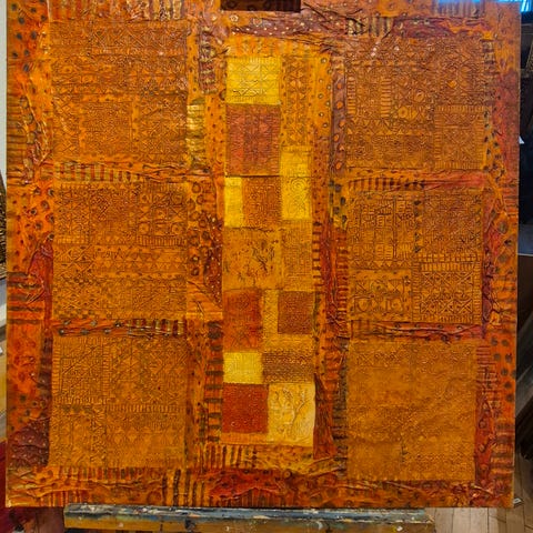 Eugéne Melamed: Komposition. Sign. Eu. Melamed 2005. Olie på lærred. 100×100.