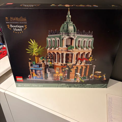 LEGO Icons byggesæt Boutique Hotel #10297 med detaljeret bygning i flere etager.
