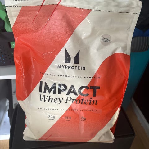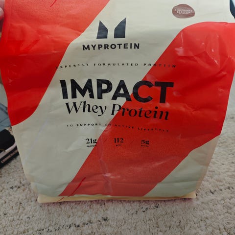 Myprotein Impact Whey Gainer proteinpulver. Produktet er et kosttilskud baseret på valleprotein, beregnet til at øge det daglige proteinindtag. Pulveret kan blandes med vand eller mælk og anvendes i forbindelse med træning eller som supplement til almindelig kost. Velegnet til personer, der ønsker ekstra kalorier og protein i kosten.