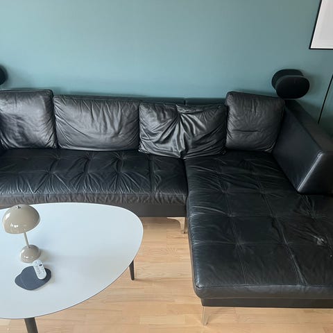 Sofa sæt med lænestol i sort læder