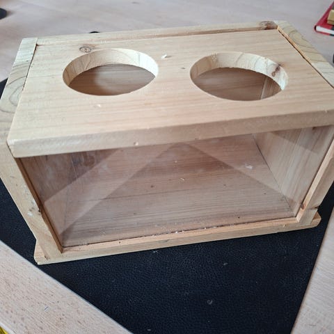 Jeg sælger en i træ, som både kan ligge i buret eller hænges op i buret.