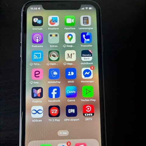 Apple iPhone 11 64 GB. Lilla med dual-kamera på bagsiden. Batterikapacitet på 79 %. Fungere upåklageligt. Har altid haft skærmbeskyttelse og cover på så den fremstår i meget god stand.