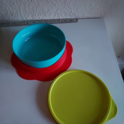 •Four-piece set - The four components of the set can be used together for a full meal, teaching the child how to set a table and subtly reminding them to drink with their meal. They can also be used individually for snacks or to separate food items from each other.