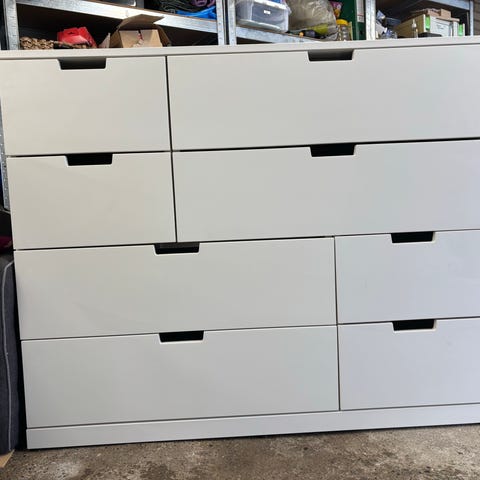 Rummelig kommode med 7 skuffer, fra IKEA i hvid.
