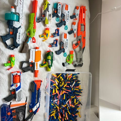 Sælges KUN samlet. Der medfølger en pose med en masse patroner. En eller 2 af dem skulle være gået lidt i stykker, men jeg aner ikke hvilke.
