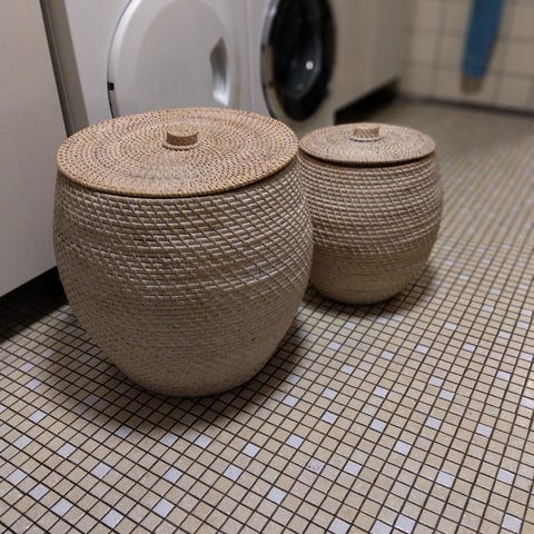 Flettet kurv til fx vasketøj, hynder, tæpper mm