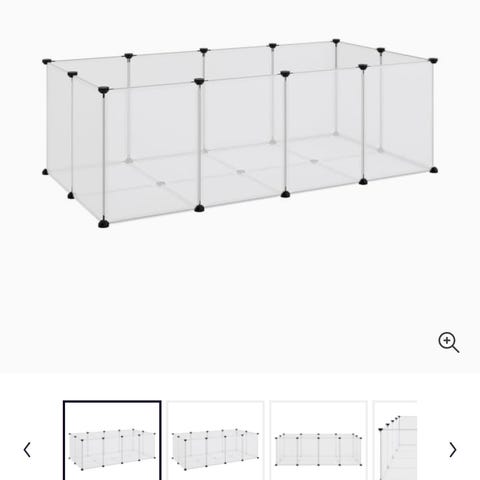 Kan sættes i forlænges af et bur så hamsteren eller marsvinet har mulighed for at løbe rundt i løbegården fra buret af. Løbegården kan også sætte sammen som en rund løbegård, den bliver sat fast med to sløjfer som vidst på et af billederne.