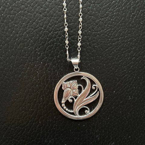 Et karakterfuldt smykke med klassisk mid-century udtryk, formentlig fra 1940–60’erne.Vedhænget hænger i en matchende sølvkæde.