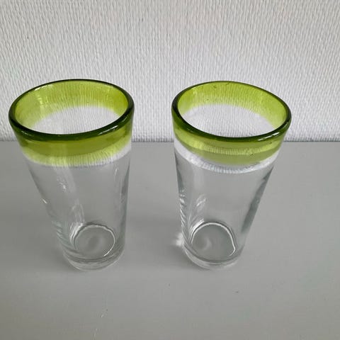 Glas mundblæste med grøn detalje 4 stk