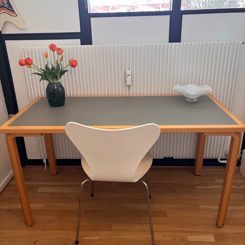 Lille spisebord i bøg med hvid linoleumsplade, Magnus Olesen for Rud Thygesen møbler.