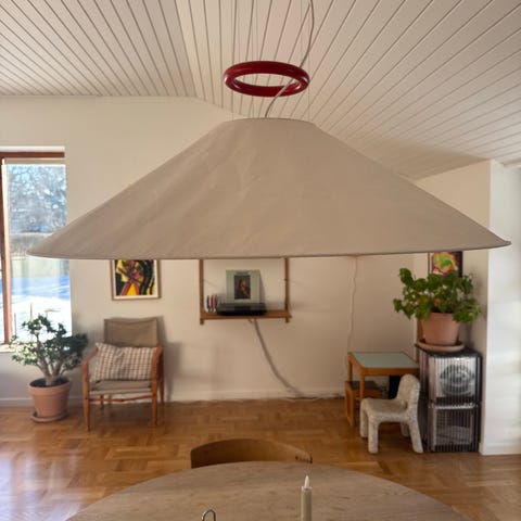 Smukkeste Ingo Maurer Floatation. Kun et år gammel, men sælges da den er et fejlkøb og desværre er for stor til vores spisebord. Har kun fået et lille bitte (nærmest usynlig) plet, som man ikke ser, men som jeg har taget billede af for god ordens skyld.