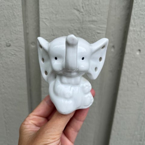 Smykkeelefant med sorte øjne og halsbånd: H: 9 cm.