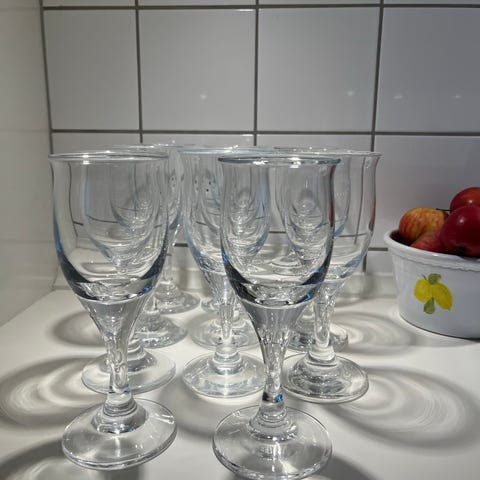 Holmegaard Chr d 8 rødvinsglas. 15,2 cm Sættet består af glas med rillet/ facetslebet struktur i bægeret og rund fod med markant stilk.
