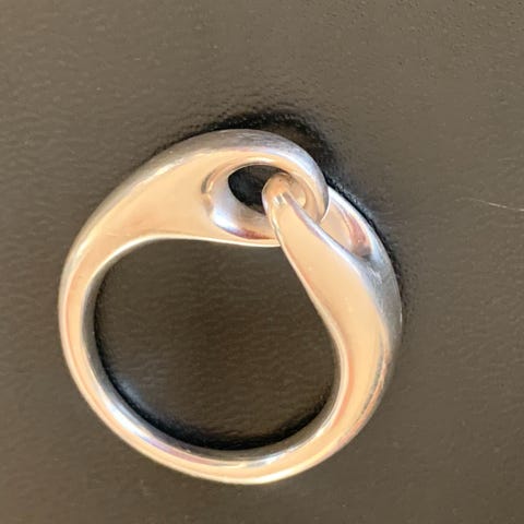 Sølv GJ ring sælges stemplet 925 med en guld perle.