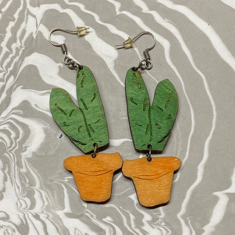 cactus øreringe, købt på et market i Finland