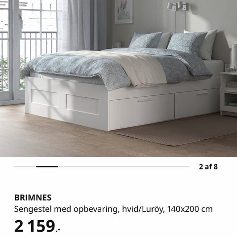 Sengen har 4 rulleskuffer i alt i siderne til opbevaring af fx sengetøj eller tøj.