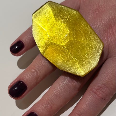 Hver sten er forskellig, og kombinationen af form, farvespil og naturlige inklusioner gør denne ring særlig og svær at finde igen.