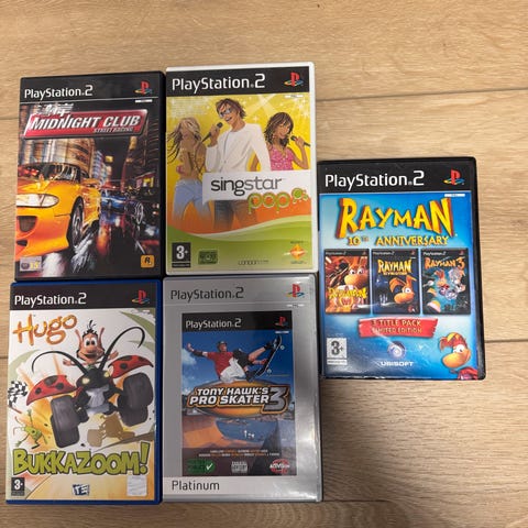 To PlayStation 2 med Singstar mikrofoner, Buzz og flere spil.