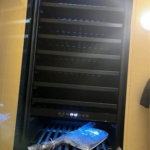Coravin vinåbningssystem i sølv og sort. Systemet monteres på vinflaskens hals og gør det muligt at tappe vin uden at fjerne korkproppen. Enheden står på en stabil fod og har håndtag og hus i metal og plast.