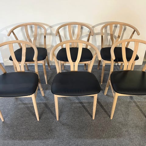 Vi sælger vores 8 smukke, sorte spisebordsstole i PU-læder, som har givet os mange gode stunder omkring bordet. Stolene har stået i vores spisestue og været faste, komfortable siddepladser til både hverdag og selskab. Det sorte materiale er lækkert at sidde på og nemt at holde rent, og stolene har med deres stilrene design passer perfekt til både moderne og klassiske hjem.