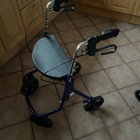 Rollator med sæde og mulighed for opbevaring af små genstande
