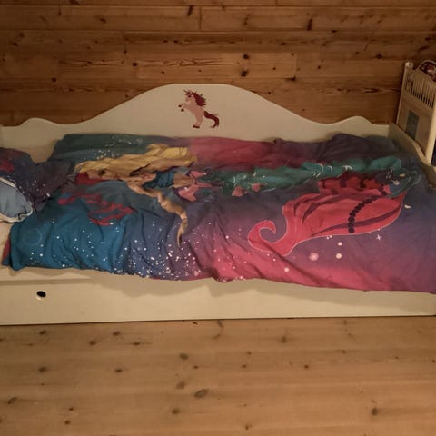 Madras medfølger: junior madras på 140 cm (L) x 70 cm (B)