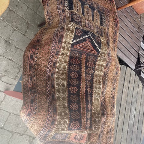 Vintage håndknytte persiske ANTIK tæppe. Baluchistan Syd Iran Rigtig fin vintage tæppe Mål: 125 × 87cm Pris: 1.650kr Har flere tæpper til salg, så kig på mine annoncer. Kan fragtes mod betaling 🚚 Skriv endelig for mere info.