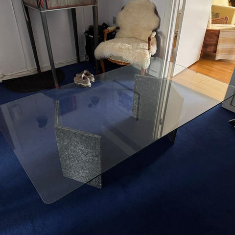 Sofabord med glasplade med granitlook