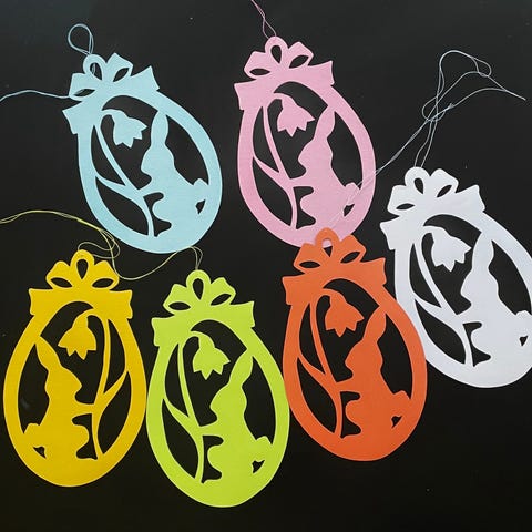 De har snorer til ophæng, æg og harer har klemmer på 100 kr