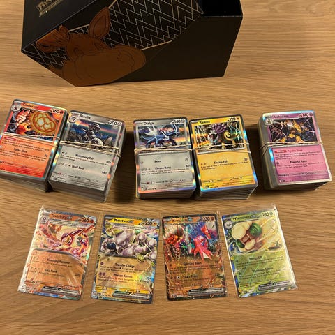 Sælger en Pokémon Elite Trainer Box (ETB) fyldt med 500 originale Pokémon-kort i flot stand – perfekt til samlere, spillere eller dig der vil have ekstremt meget for pengene.