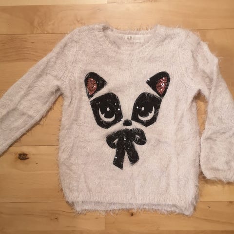 H&M bluse til pige i størrelse 122/128. Blusen er sort med små hjerter og har langærmet design. Materialet er primært bomuld med lidt elastan for stræk og komfort. Velegnet som hverdagsbluse eller som lag under anden beklædning i køligere vejr.
