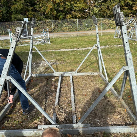 Metalstativ til sejlbåd. Justerbare anlæg mod skroget. 383x259cm. Højde 170cm.