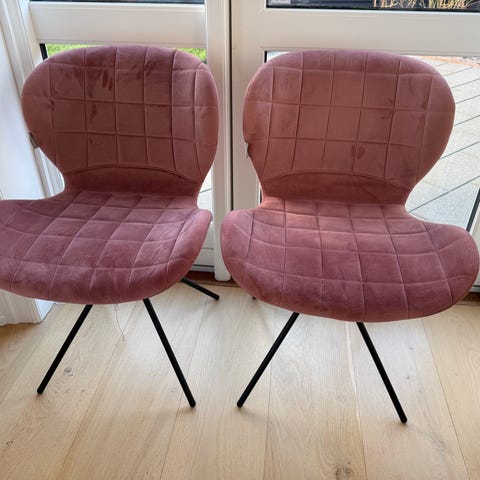 Meget behagelige og fine velour stole 4 stk. i alt. Brugt men i god stand kommer fra et renligt, rygefrit og dyrefrit hjem.