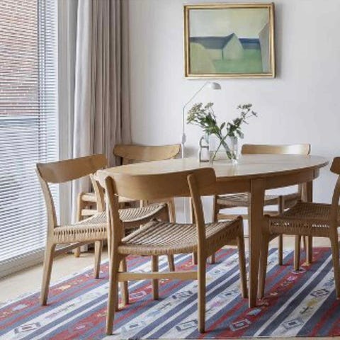 Rundt midcentury Kurt Østervig spisebord med 2 tillægsplader i egetræ
