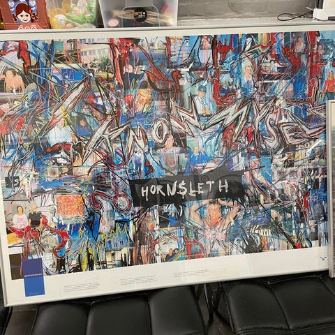 En af Hornslets farverige plakater . Plakaten er signeret.