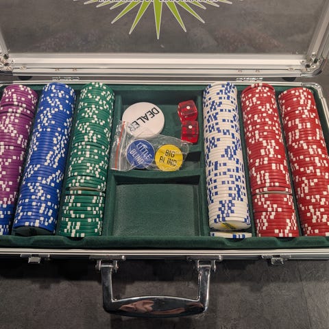 Texas Hold’em pokerbord i sammenklappeligt design. Bordet er ottekantet med markerede pladser til spillere og kort på spillefladen. Integrerede kopholdere og bakker til jetoner ved hver spillerplads. Leveres med bæretaske, som gør bordet nemt at transportere og opbevare. Velegnet til hjemmepoker og andre kortspil.