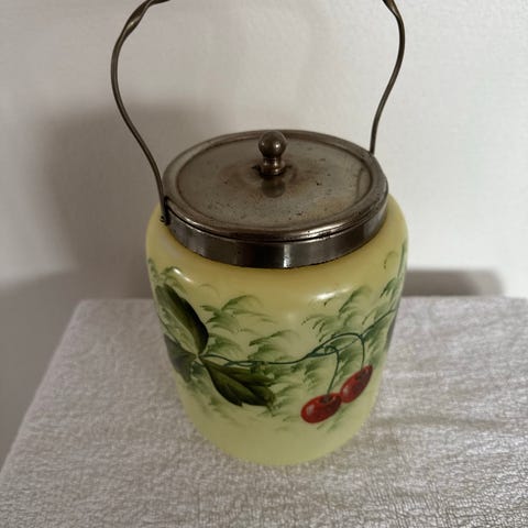 Antik kiksespand i glas med låg og hank klar glas metal