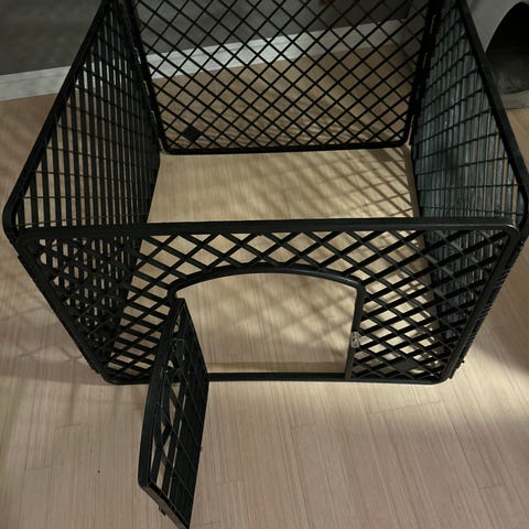 Her sælges en hundegård, kan formes som ønsket, firkantet,trekand,aflang osv. 60cm høj, med åbning i.